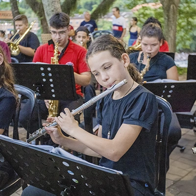 - Oficinas de musicalização com aulas de flauta doce, flauta transversal, clarinete, sax-alto, sax-tenor, trompete, trombone, bombardino, violão, bateria e percussão;